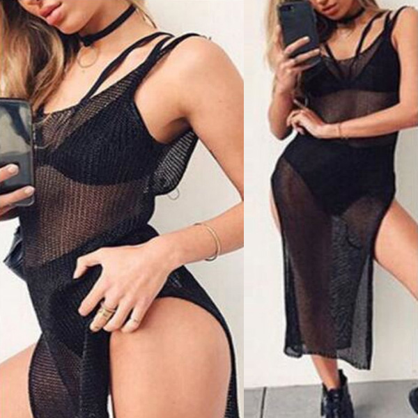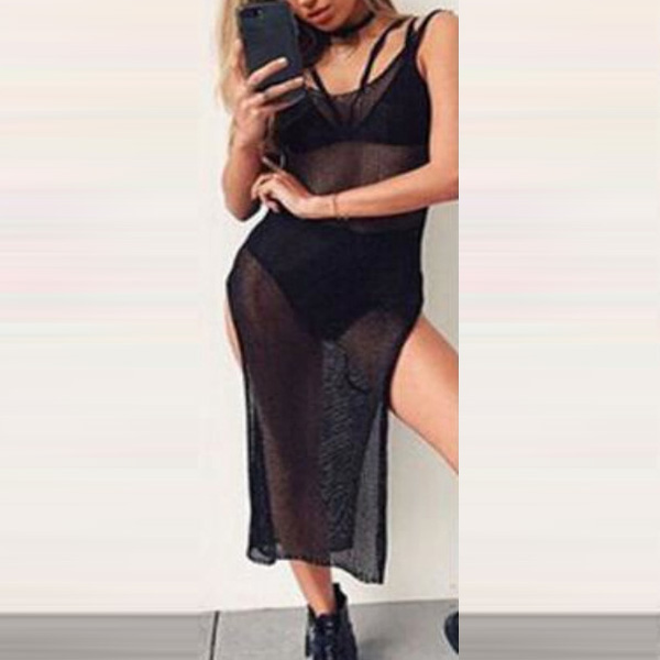 v-neck and slit hem design,sexy and alluring. It is a good idea if you match it with your sexy bikini set. Trust me,