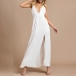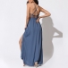 Sexy Backless V-neck Slit Hem Lace Spliced Sling Dress