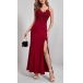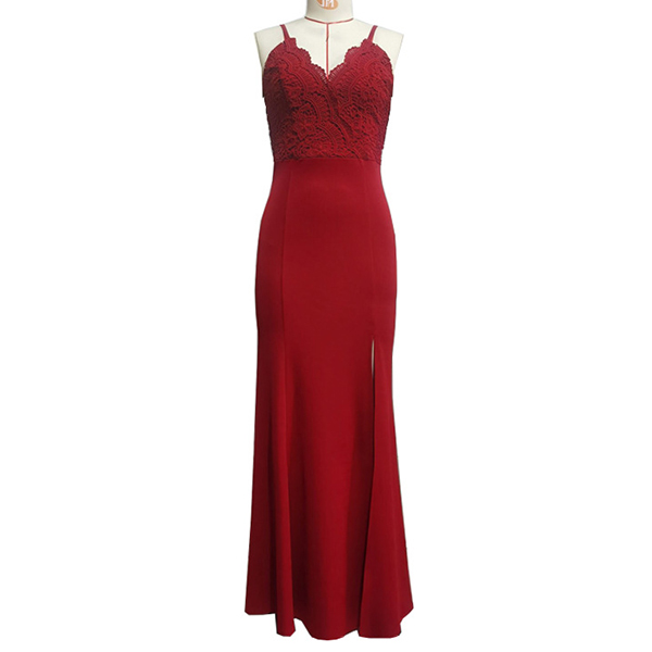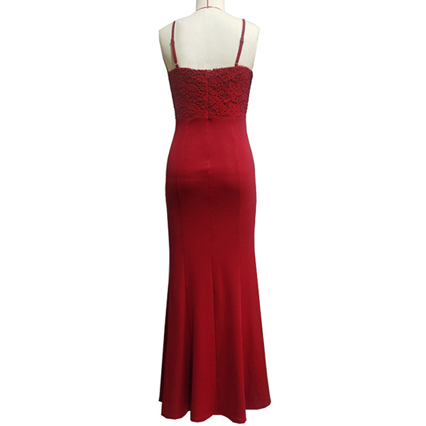 When stepping into a party with this dress,you can easily stand out in the crowd. The red tone design makes it look so eye-catching. Sling style,with backless,v-neck,slit hem and lace spliced details,which can offer you a more alluring look. Paired with your sexy heels,elegant clutch and sparkle necklace,you can't be more amazing and charming!