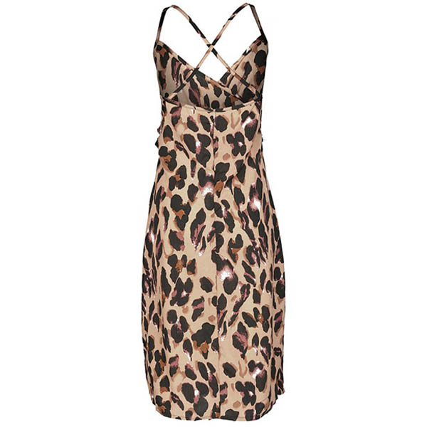 Sexy Backless V-neck Slit Hem Leopard Printed Sling Dress