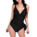 For your swimming days,this one-piece swimsuit can be your perfect partner. Sling style,the backless,deep v-neck and sit hem design will make this piece look more alluring and attractive. You can make a knot at the hem if you wanna add some extra charm. Enjoy your swimming time with this little piece.
