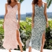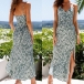Sexy Backless V-neck Slit Hem Printed Sling Dress