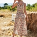 For your beach days and tropical getaways,you need such a relaxed and dreamy dress. Its vibrant floral print details will help you gain more eyes. Sling style,with backless,v-neck and slit hem design,this dress also can exude your sexy and flirty side. On these sunny days,adding a sweet straw hat would be more perfect.