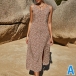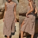 Sexy Backless V-neck Slit Hem Printed Sling Dress