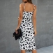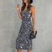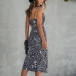 Sexy Backless V-neck Slit Hem Printed Sling Dress