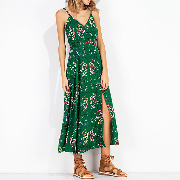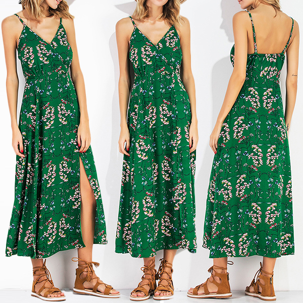 Sling style,designed with backless,v-neck and slit hem,sexy and charming. The vibrant floral print can give you a more