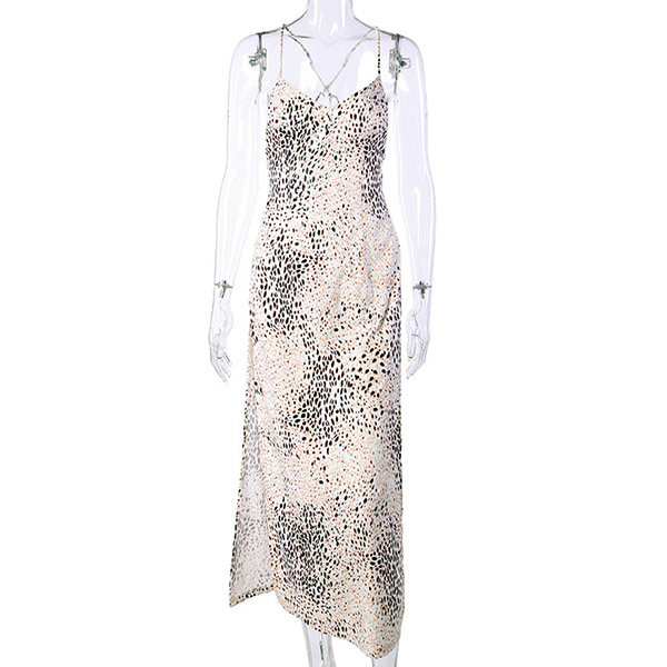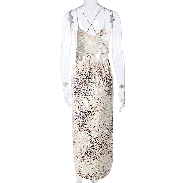 Sexy Backless V-neck Slit Hem Serpentine Printed Sling Dress