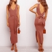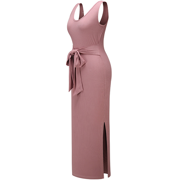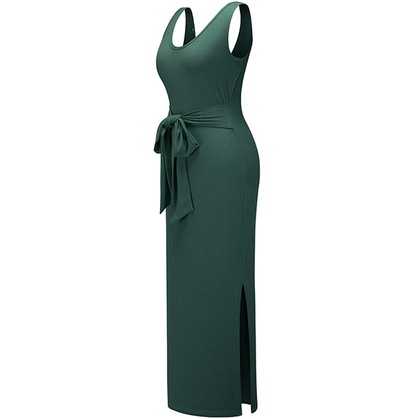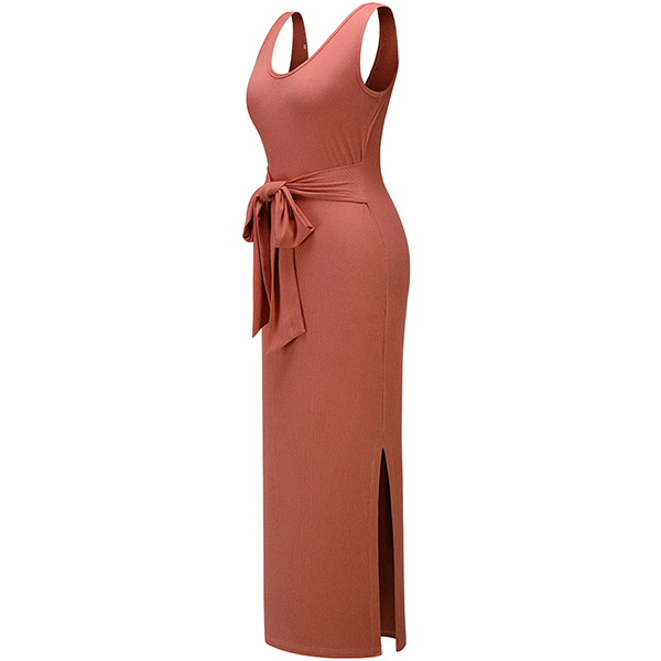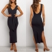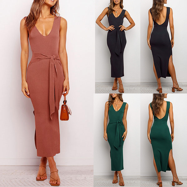 Sexy Backless V-neck Slit Hem Sleeveless Slim Fit Dress