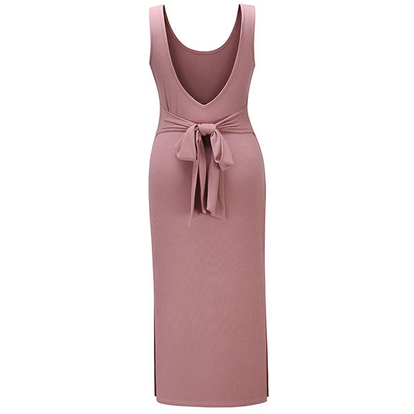 Hey,girls,you can trust in this simple style dress to exude your style and charm. It boasts a solid color,with backless,v-neck and slit hem design,which make this piece look so alluring,while the fit silhouette and lace-up design can better highlight your slender figure. Attracted? Then buy one!