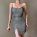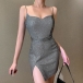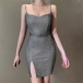 Sexy Backless V-neck Slit Hem SLim Fit Sling Dress