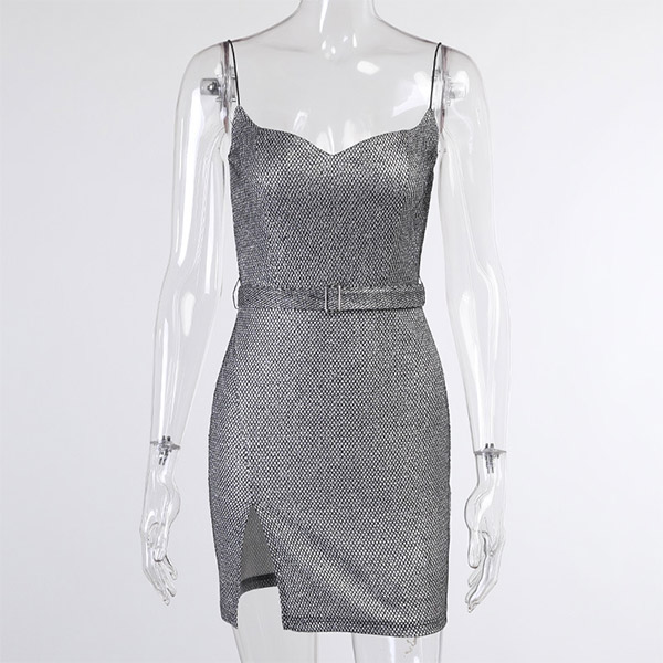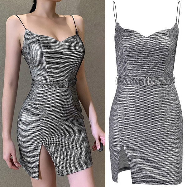 Create a sassy look with the flirty details of this sling dress. Its alluring design details like backless,v-neck and slit hem design make this piece look so alluring and seductive. Meanwhile,its fit silhouette design can better demonstrate your slender figure. When you are invited to some fancy events,you can just trust in this dress to be your perfect partner.