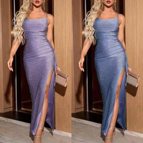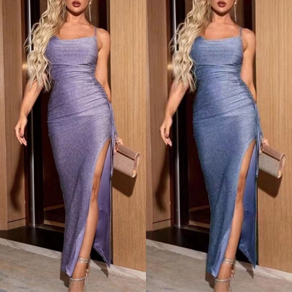 Your perfect and slender figure can have a full display in this dress. Sling style,with backless,v-neck and slit hem design,these details make this piece look so alluring and stunning. No matter when and where you are,you can easily be the focus when you don this little stunner.
