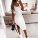 Combination of stylish and flirty vibes,this dress is worth to arouse your attention. Sling style,with backless,v-neck and slit hem design,these details make this piece look so attractive and sultry,while the fit silhouette design can portray your slender figure. For your summer days,this dress is your wise choice.