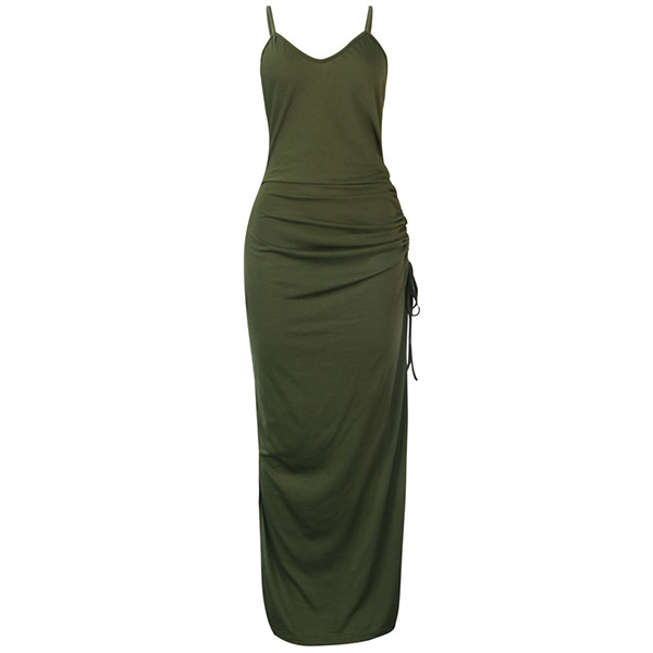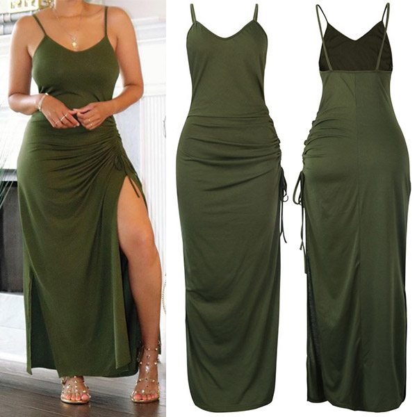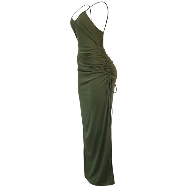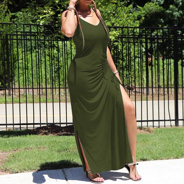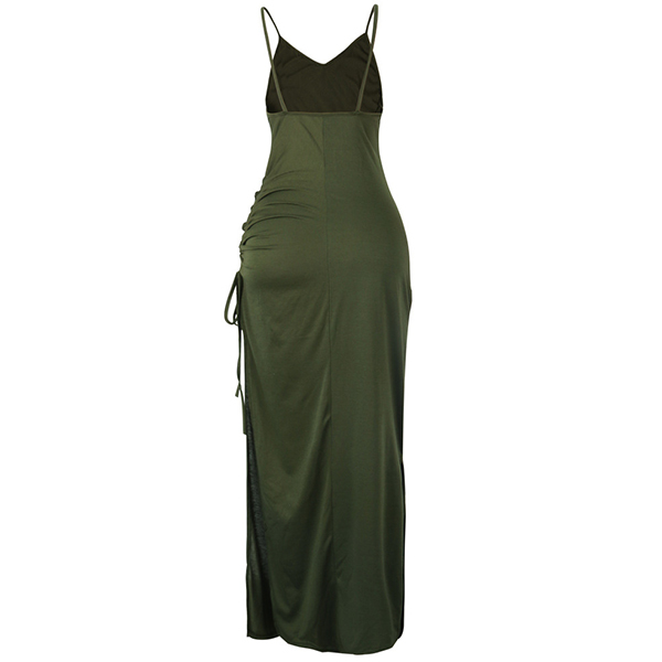 Sexy Backless V-neck Slit Hem Solid Color Slim Fit Sling Dress