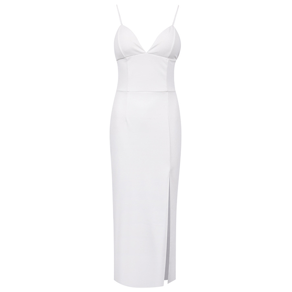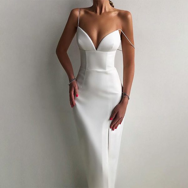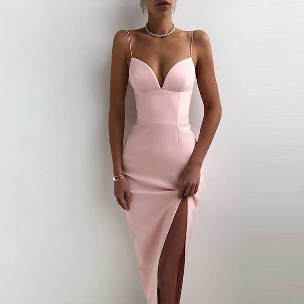 Sexy Backless V-neck Slit Hem Solid Color Slim Fit Sling Dress