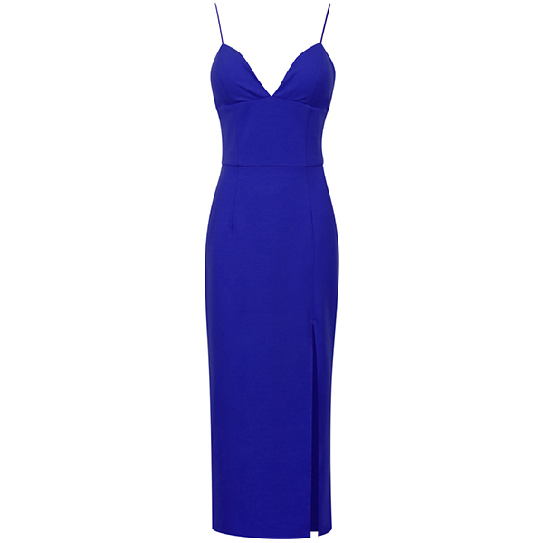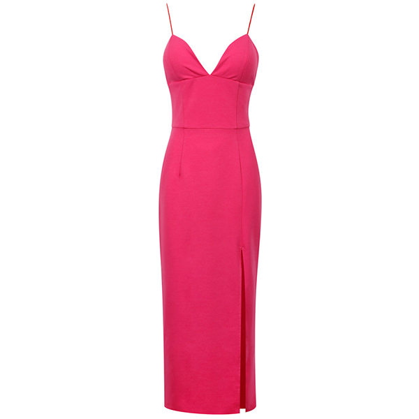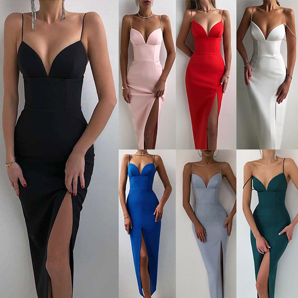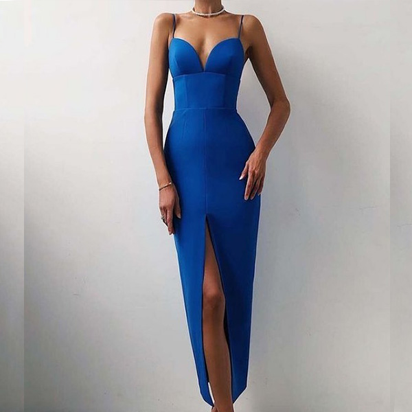 Wanna make a great coup at tonight's cocktail party? This dress can grant your wish. Sling style,with backless,deep v-neck and slit hem design,these details make this piece look so sexy and alluring,while the high waist and fit silhouette design will portray your perfect figure. You are sure to stand out in the crowd in this little stunner!