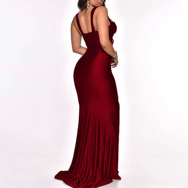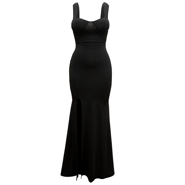 Sexy Backless V-neck Slit Hem Solid Color Slim Fit Sling Party Dress