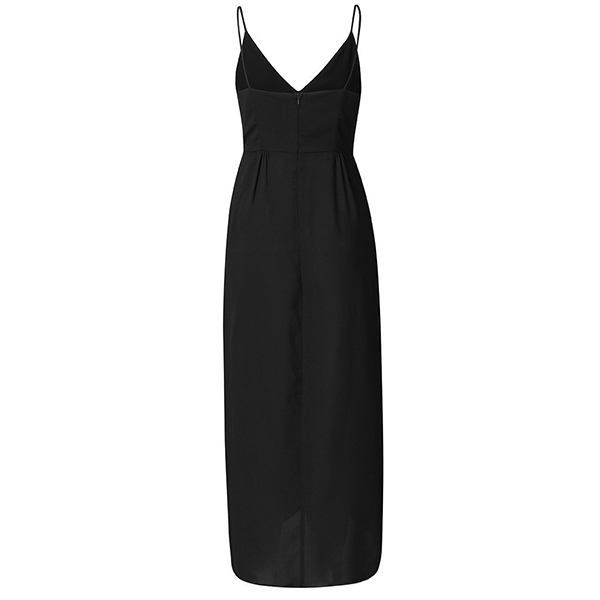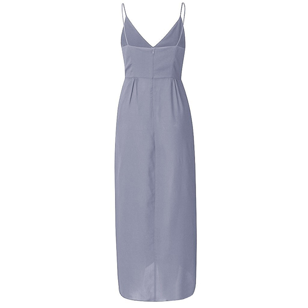 Sexy Backless V-neck Slit Hem Solid Color Sling Dress