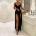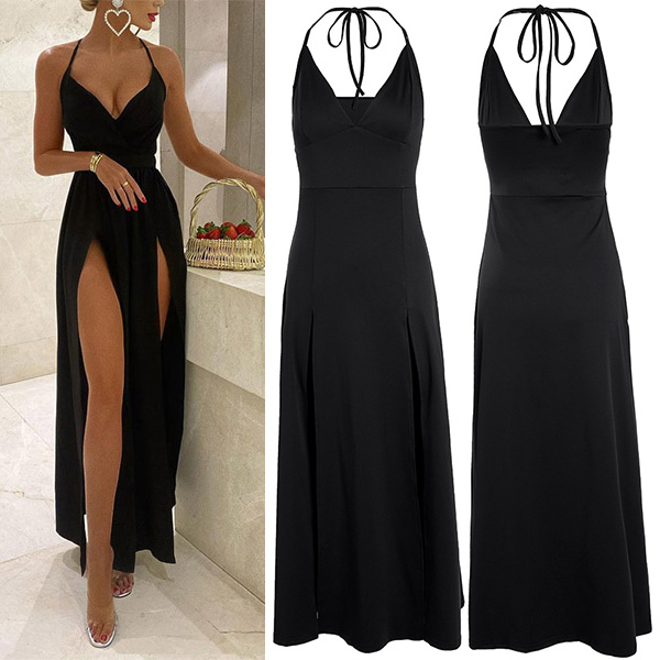You can easily be an alluring sight to draw more attention when you dress yourself up with this little stunner. Sling style,with backless,deep v-neck and slit hem design,this dress can offer you a more stunning look. No matter when and where you are,you can easily be the focus in this dress.