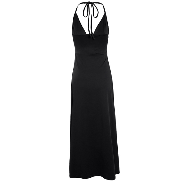 Sexy Backless V-neck Slit Hem Solid Color Sling Dress