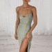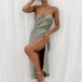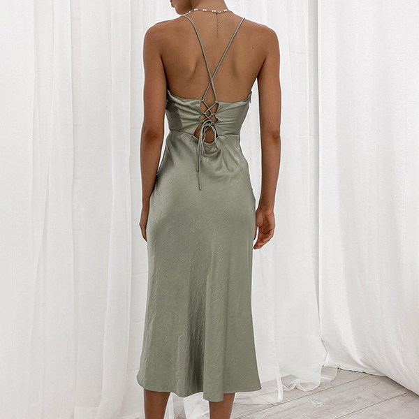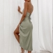Sexy Backless V-neck Slit Hem Solid Color Sling Dress