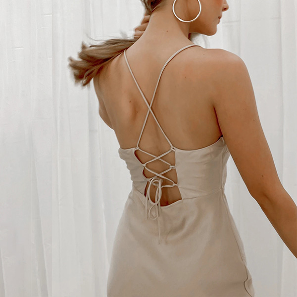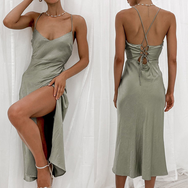 Like the saying goes, if you have it why not flaunt it? Seductive appeal comes easy once you slip into this dress. Sling style,with backless,v-neck and slit hem design,these design details can offer you a more alluring look. You can just dress it up with your sexy heels for a charming look.