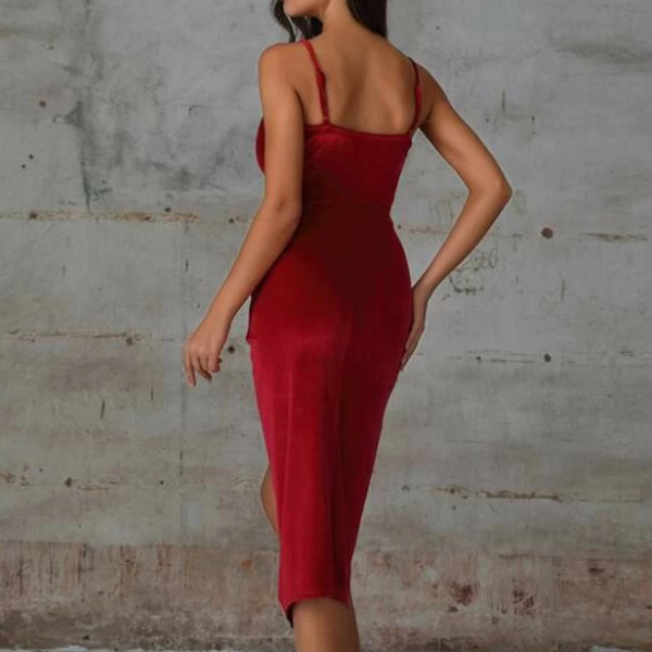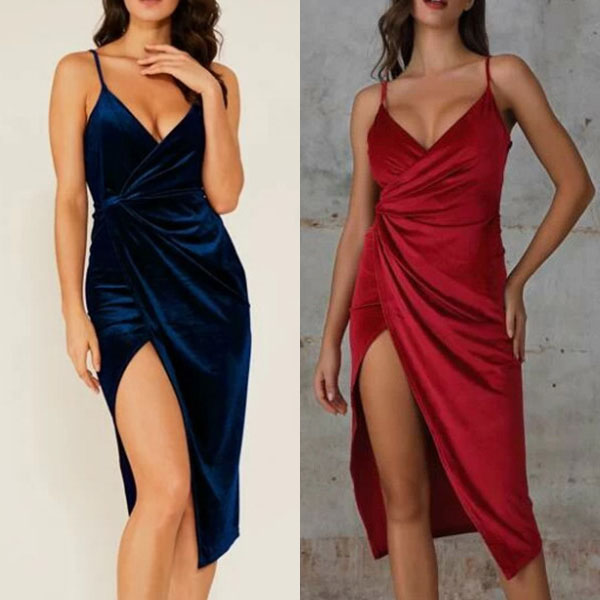 Add a touch of sexy and flirty vibes to your look with the dress. Sling style,with backless,v-neck,slit hem and a fit silhouette design,this dress will express your beautiful and feminine appeal. When you wear this little stunner,you can easily stand out in the crowd!