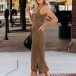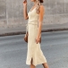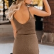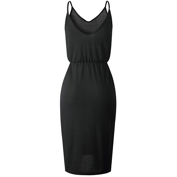Sexy Backless V-neck Slit Hem Solid Color Sling Knit Dress
