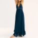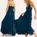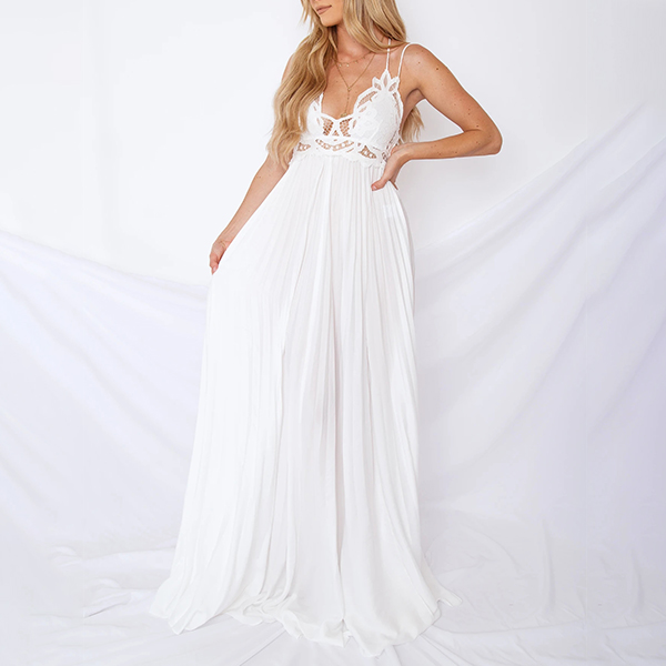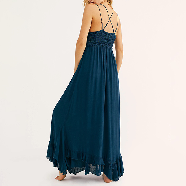 Sexy Backless V-neck Slit Ruffle Hem High Waist Lace Spliced Sling Maxi Dress