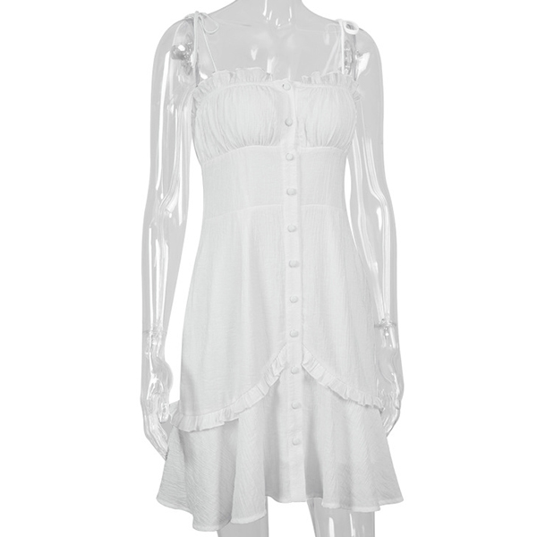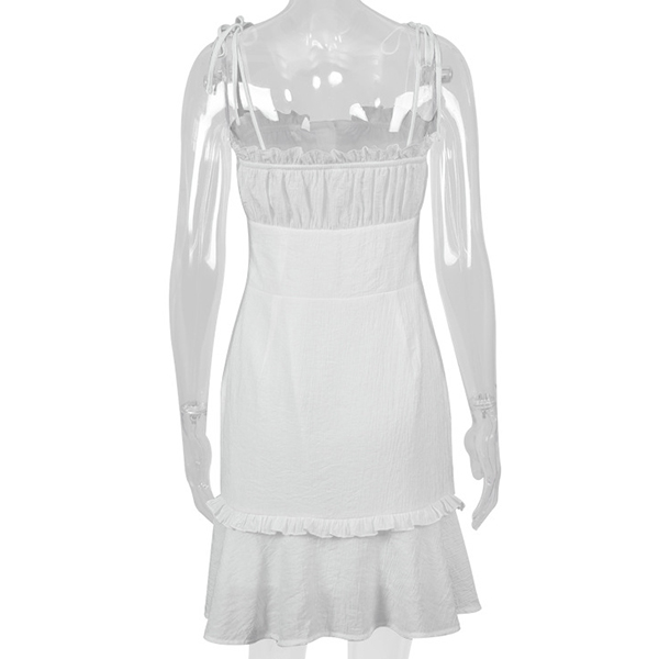 Hey,girls,you can trust in this dress to be your secret weapon to express your beauty and charm. Sling style,with backless,v-neck and ruffle hem design,these details make this piece look so alluring and flirty,while the fit silhouette design can portray your perfect figure and curve. Dress it up with your sexy heels and you can look beautiful enough!