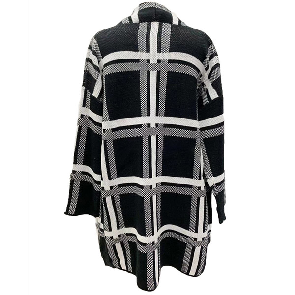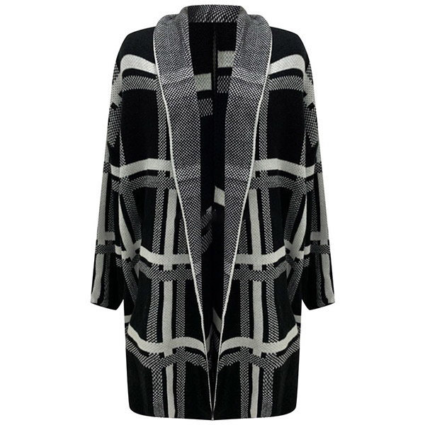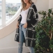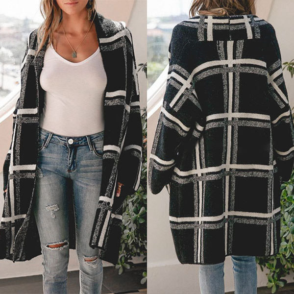 Fashion Long Sleeve Loose Plaid Knit Cardigan