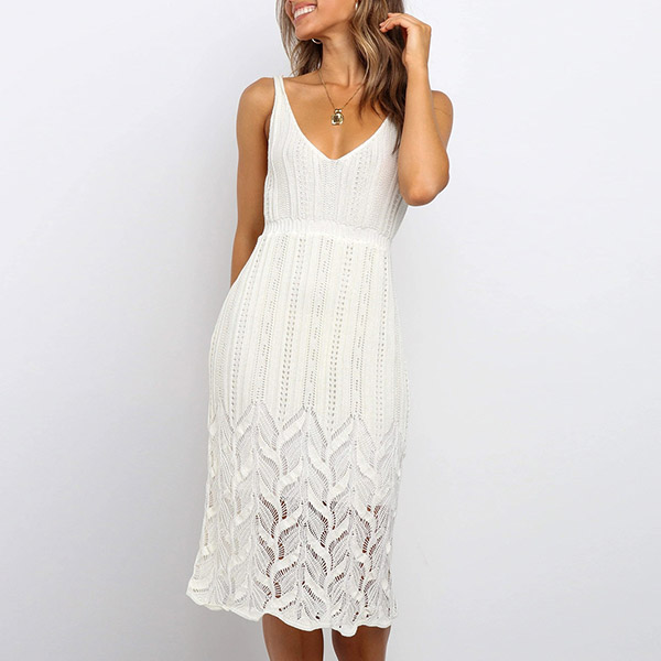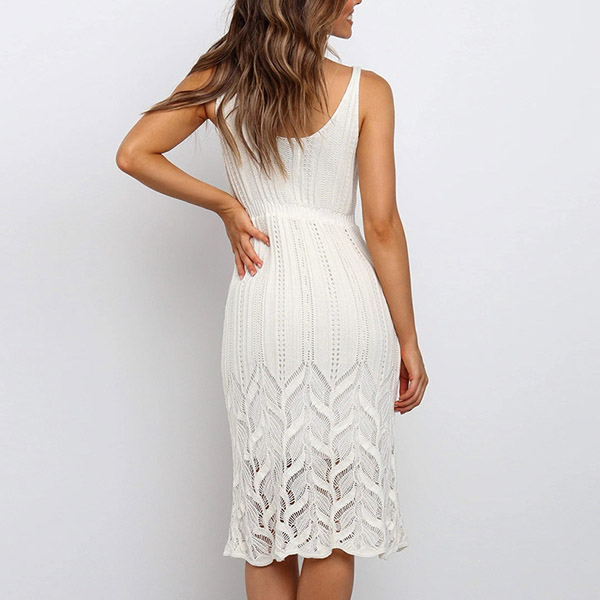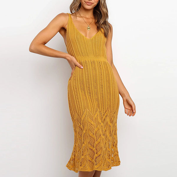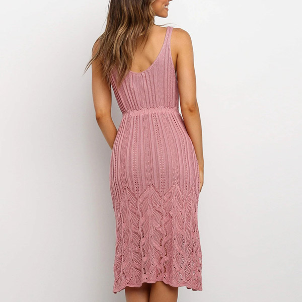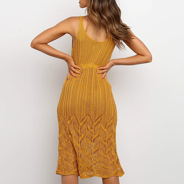 Embrace the warmth of a sunny weekend with a delightfully dress such as this creation. This knit dress comes with a solid color,which makes it look generous yet elegant,while the backless and v-neck design can offer you a sexy and flirty look. Your beauty and femininity can have a full display in this dress.