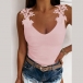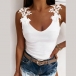 Sexy Backless V-neck Solid Color Lace Spliced Sling Top