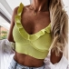Sexy Backless V-neck Solid Color Ruffle Sling Crop Top