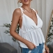Sexy Backless V-neck Solid Color Ruffle Sling Top