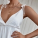 Greet the sun-soaked summer days with a relaxed piece such as this creation. Sling style,the backless and deep v-neck design can offer you a more alluring look,while the ruffle design at the waist part will lend you some sweet vibes. Try to match with a shorts to achieve for a charming and beautiful summer look.