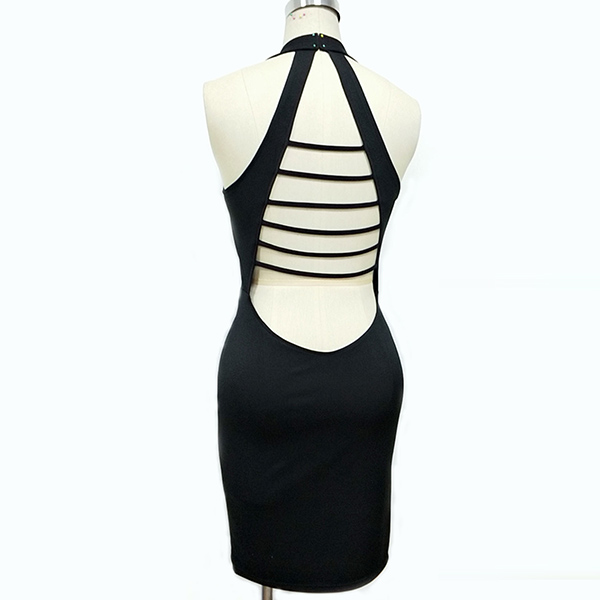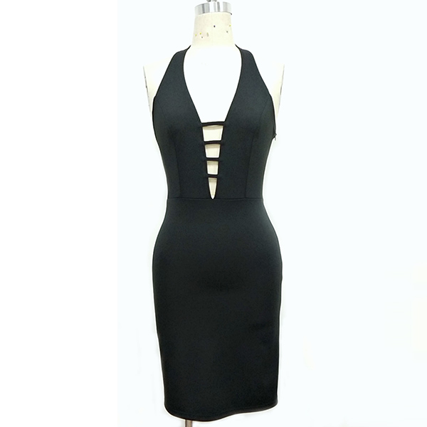 Enhance your feminine appeal on the weekends in the day time and transition to your date night with this dress. Halter style,with backless,deep v-neck and a fit silhouette,this dress is a secret weapon to showcase your slender figure and exude your charming feminine appeal.
