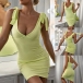 Sexy Backless V-neck Solid Color Slim Fit Lace-up Sling Dress