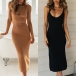 Sexy Backless V-neck Solid Color Slim Fit Sling Dress