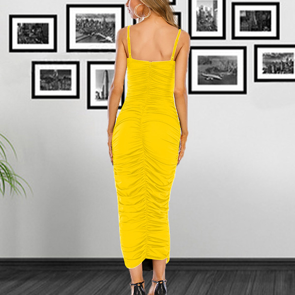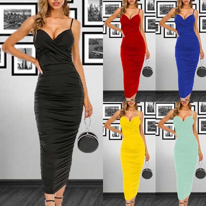Sexy Backless V-neck Solid Color Slim Fit Sling Dress