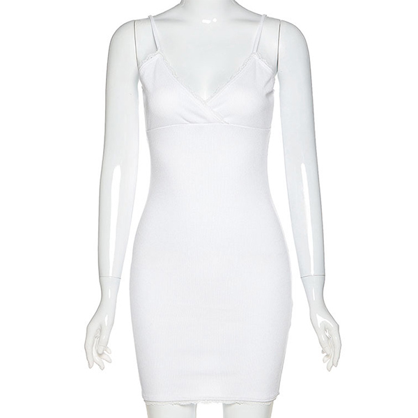 Sexy Backless V-neck Solid Color Slim Fit Sling Dress
