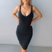 Sexy Backless V-neck Solid Color Slim Fit Tank Dress