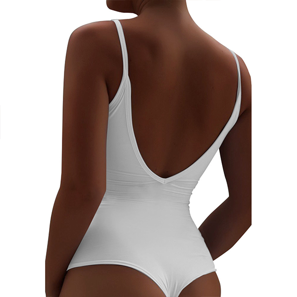 Sexy Backless V-neck Solid Color Sling Bodysuit