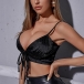 Sexy Backless V-neck Solid Color Sling Crop Top