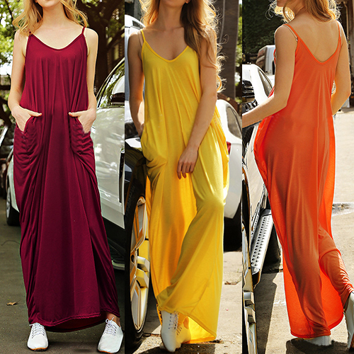 Strolling on the street with this sling dress,you would draw more attention. Solid color style,designed with backless,v-neckline