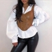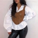 Sexy Backless V-neck Solid Color Sling PU Leather Crop Top