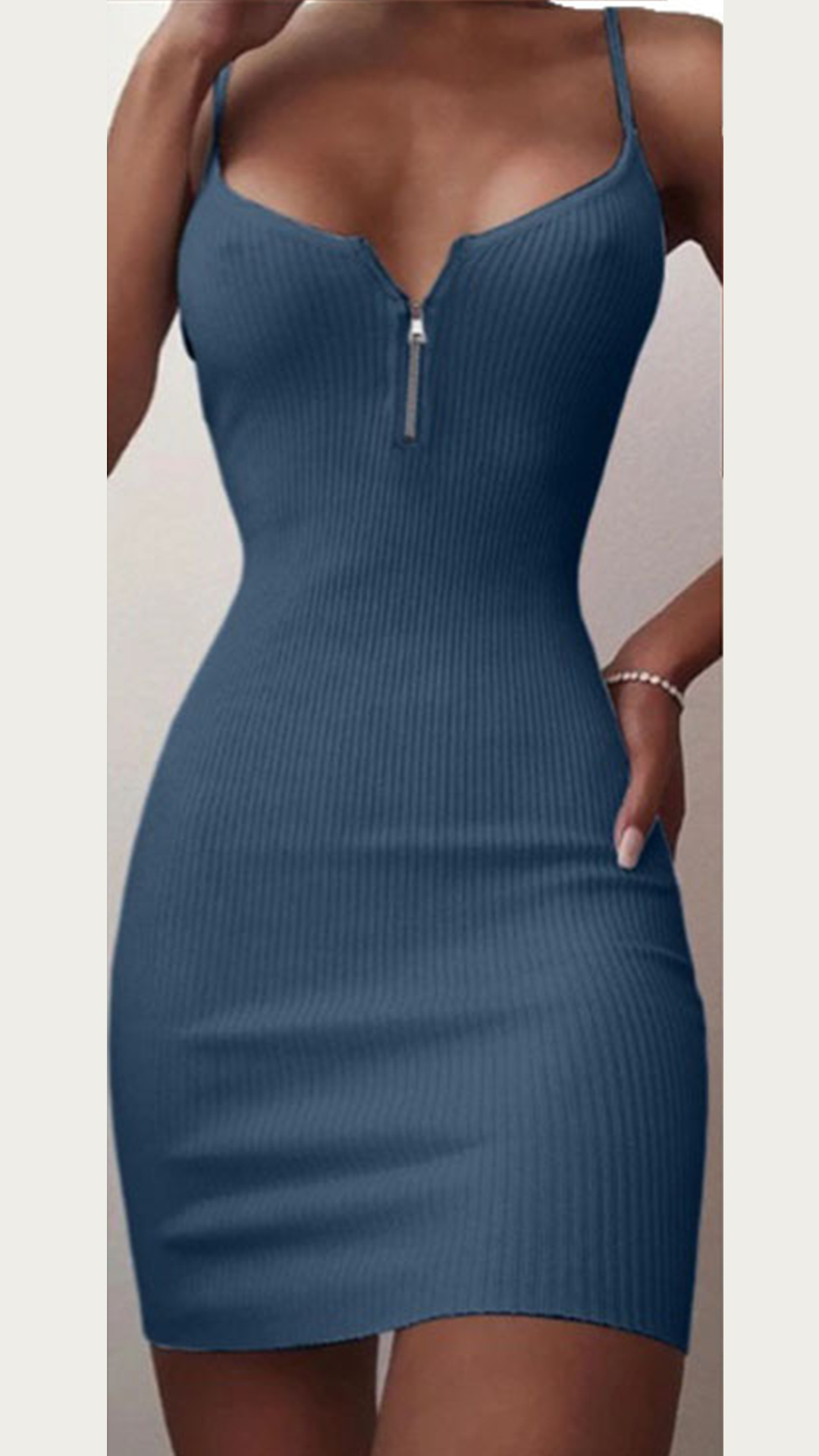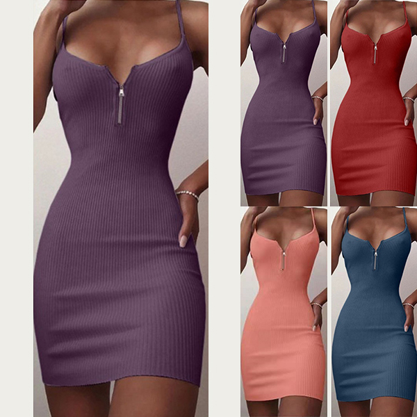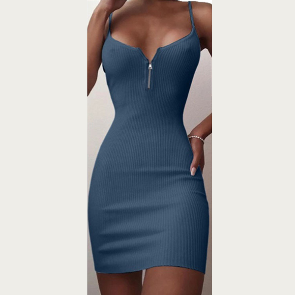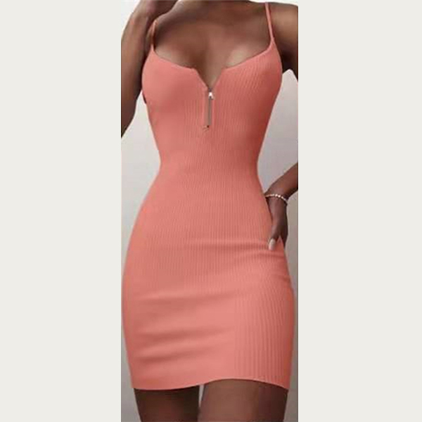 Sexy Backless V-neck Solid Color Sling Tight Dress