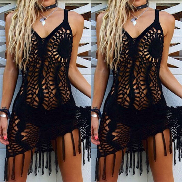 There is no doubt that you can achieve for a sexy and charming beach look when you wear this smock dress. Sling style,with backless,v-neck,tassel and hollow out details,these design details make this piece look so sexy and alluring. Perfect fit for matching with your sexy bikini sets.