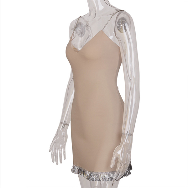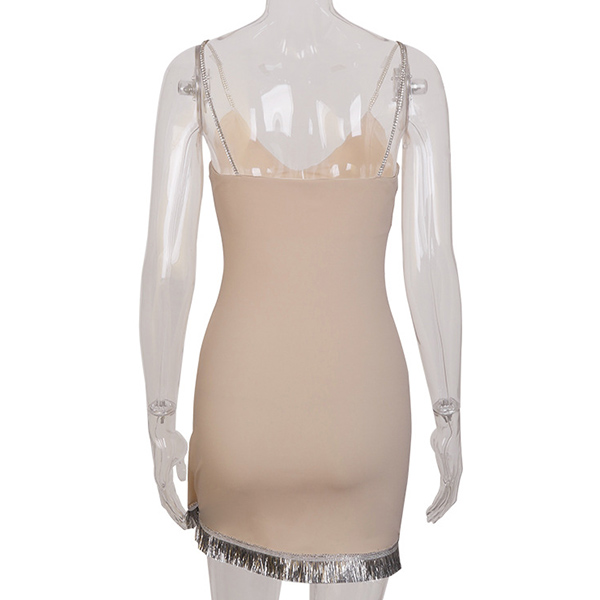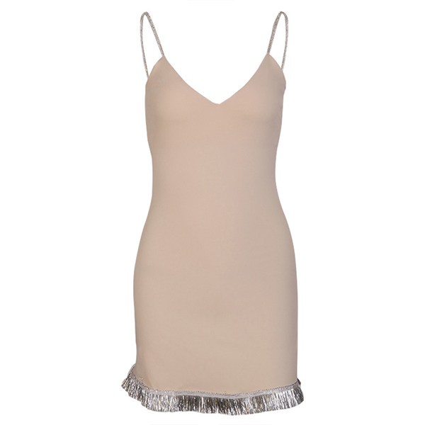 Sexy Backless V-neck Tassel Hem Slim Fit Sling Dress