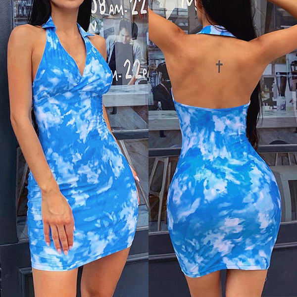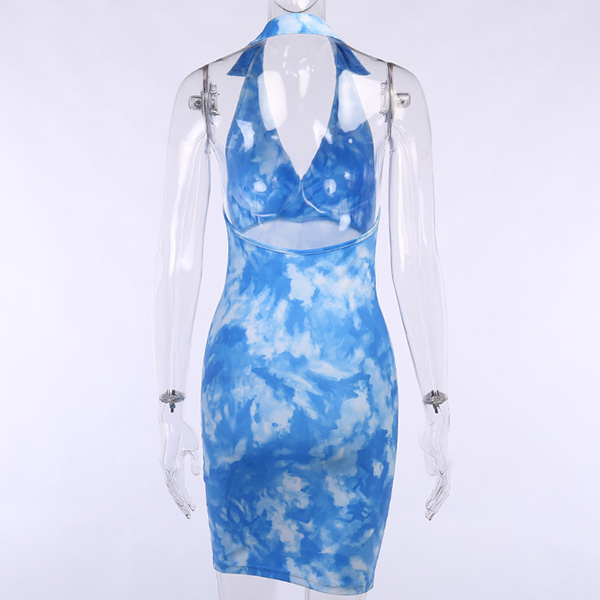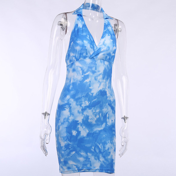 You are sure to catch more eyes when you don this dress. Halter style,with backless,v-neck and a tight silhouette,this dress can exude your sexy and alluring side. Moreover,the tie-dye printed details make this piece look more attractive. So why not slip into this piece to express your beauty and charm?